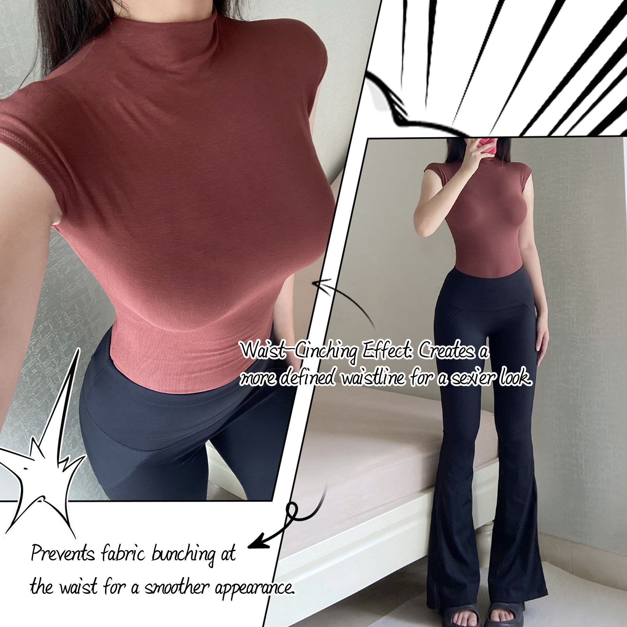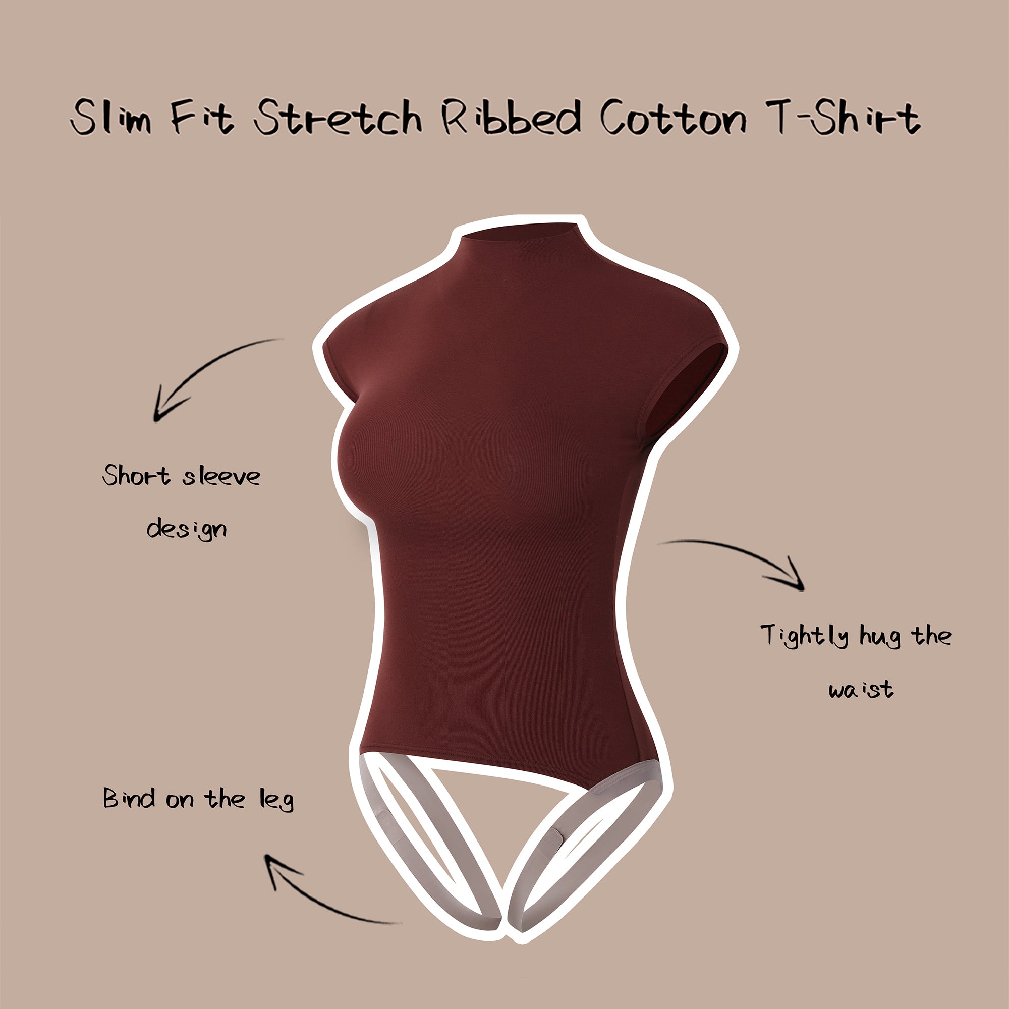 Women's Mock Turtle Neck Body Suits Short Sleeve Bodysuit Basic T shirts Leotard Clothing
